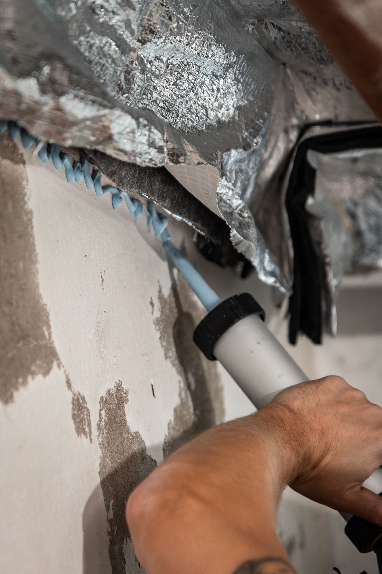 Kürze die vier innenliegenden Schichten von FX5 um ca. 5-10 cm, sodass nur noch die zum Raum gewandte, reflektierende Schicht von FRIEDWIL FX5 übrig bleibt.